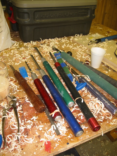 In the pictures you can see Binh turning a thin walled open bowl as well as a selection of his tools. Binh’s assistant for the week Daryl cut up green bowl blanks for the class. There were a selection of Maple and Cherry blanks available.